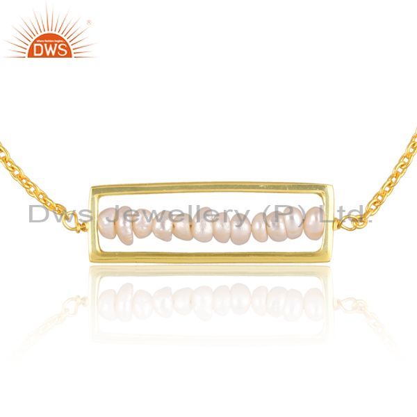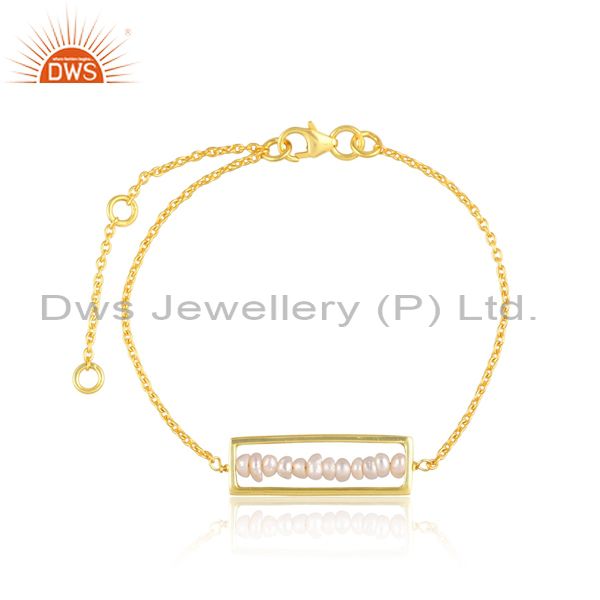 Pearl Charm Set Gold On 925 Silver Statement Chain Bracelet