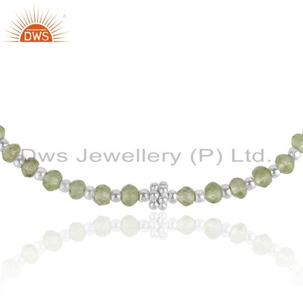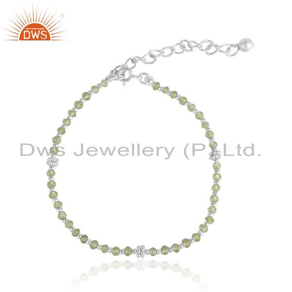 Peridot Beaded Gemstone Girlswhite Rhodium Plated Silver Bracelet