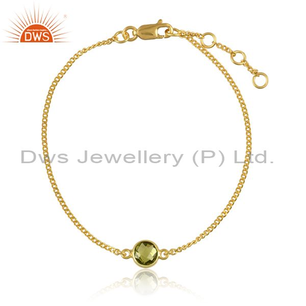 Peridot Set Gold On 925 Silver Statement Chain Bracelet