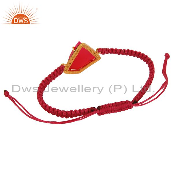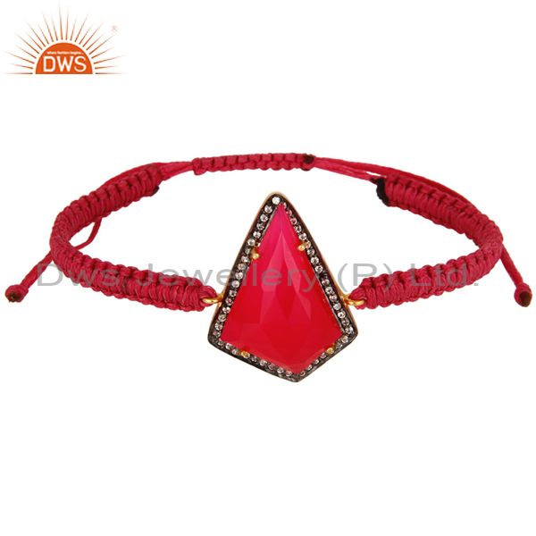 Pink Chalcedony And Zircon 18K Gold Plated Sterling Silver Mecrame Bracelet