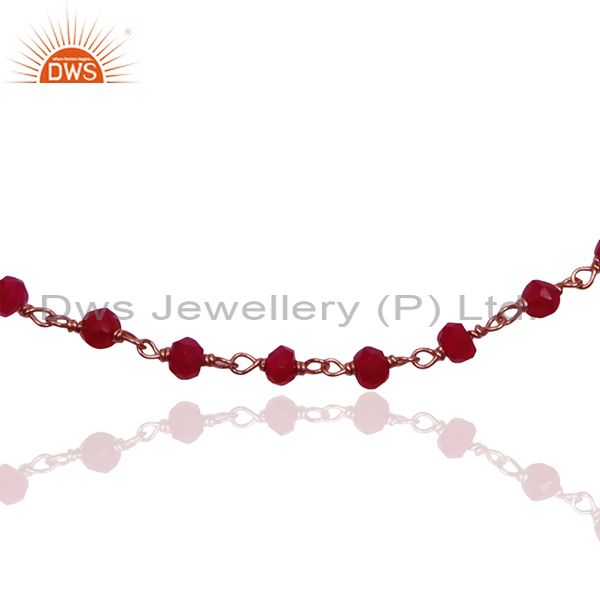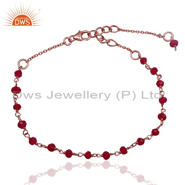 Pink Chalcedony Beaded Gemstone Rose Gold Plated Sterling Silver Bracelet