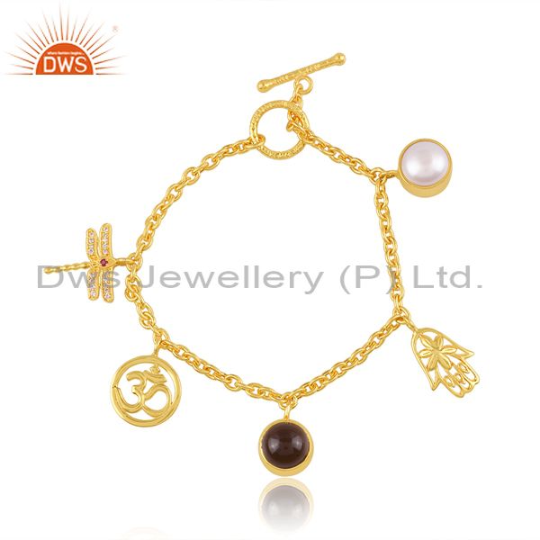 Premium Brass Gold Bracelets With Many Gemstones’ Charms