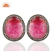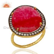 Prong-Set Cz & Red Aventurine Gemstone Macrame Bracelet