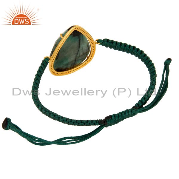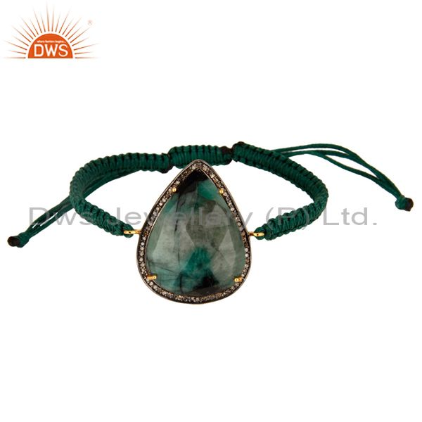 Prong Set Emerald Gemstone Sterling Silver Diamond Handmade Macrame Bracelet