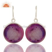 Purple Druzy Agate Solid Sterling Silver Chain Bracelet With Lobster Lock