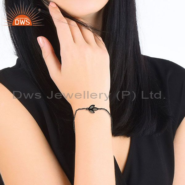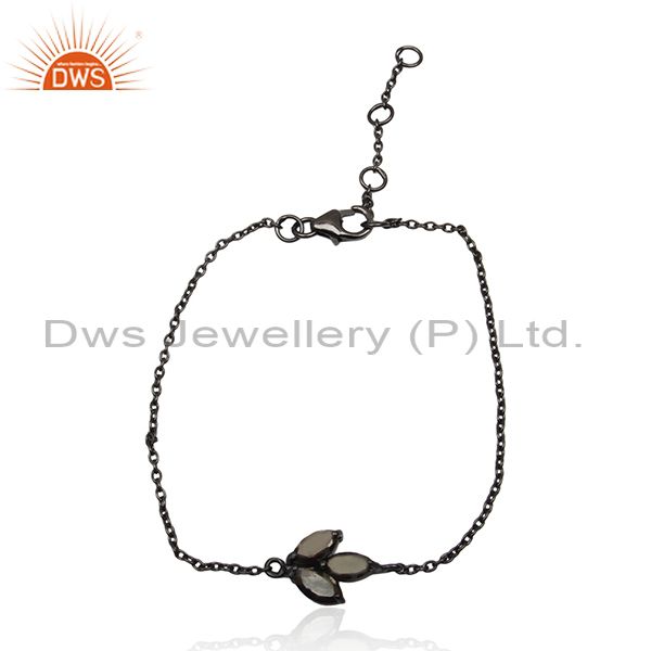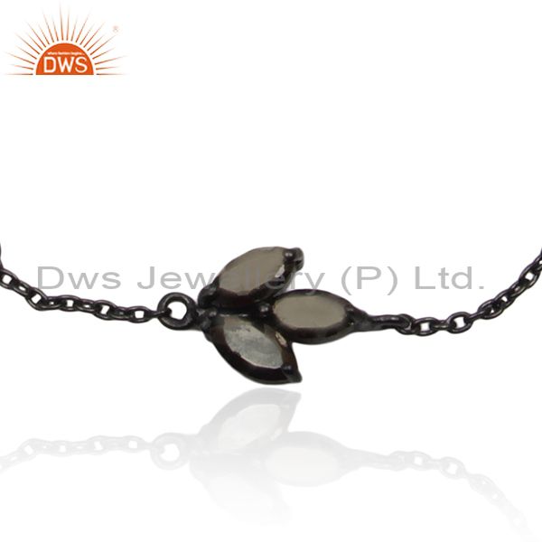 Pyrite Gemstone Black Rhodium Plated Sterling Silver Designer Bracelet for Women