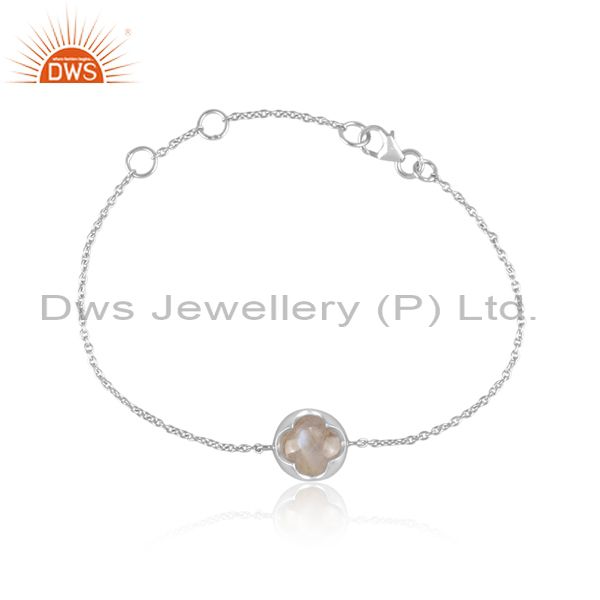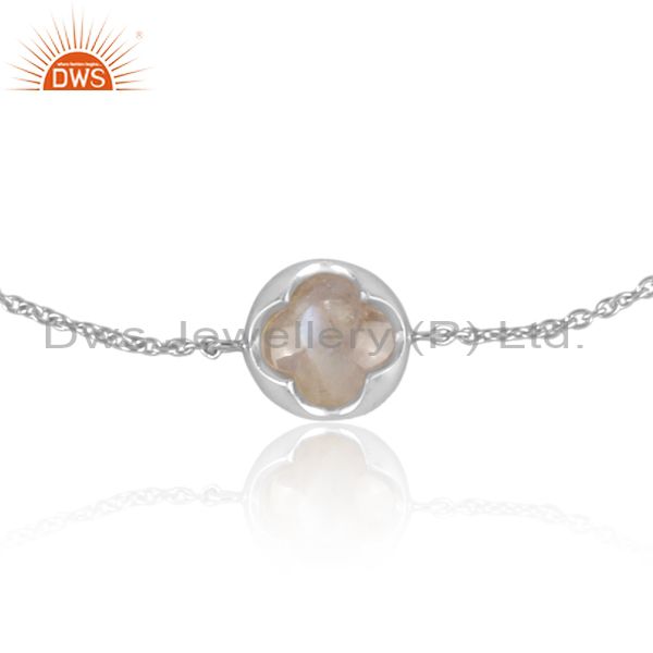 Rainbow Moon Stone Set Fine Sterling Silver Charm Bracelet