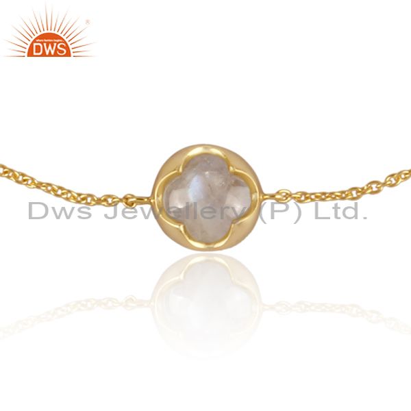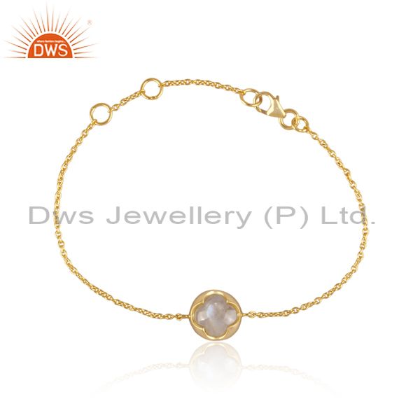 Rainbow Moon Stone Set Gold On 925 Silver Charm Bracelet