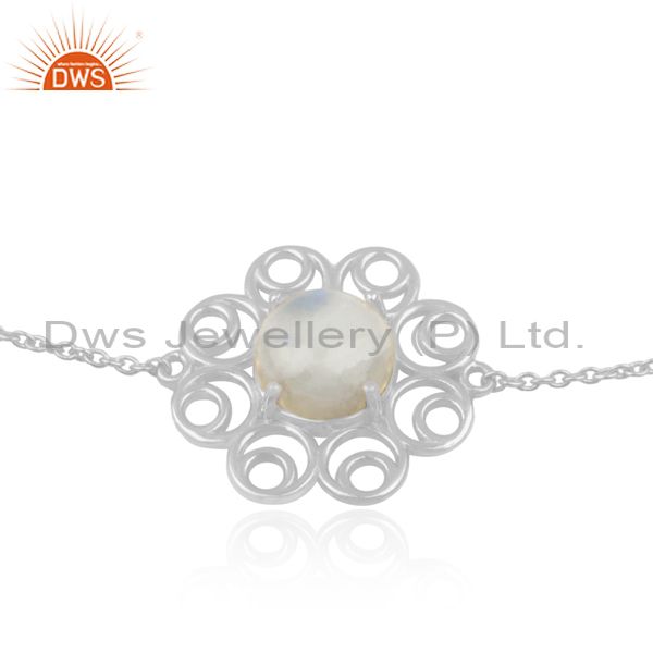 Rainbow Moonstone 925 Sterling Silver Chain Bracelet Wholesale