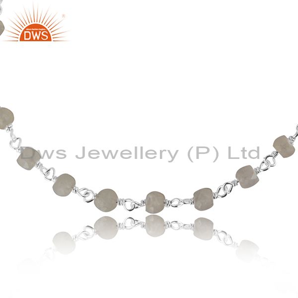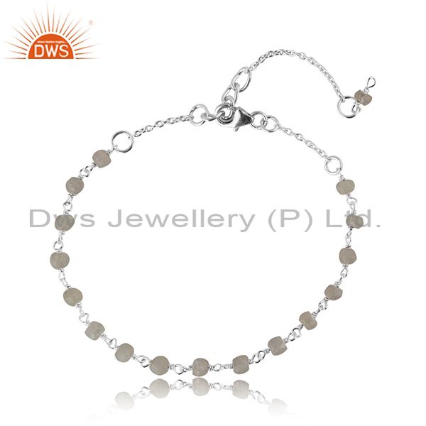 Rainbow Moonstone Beaded Gemstone Sterling Silver Chain Bracelet
