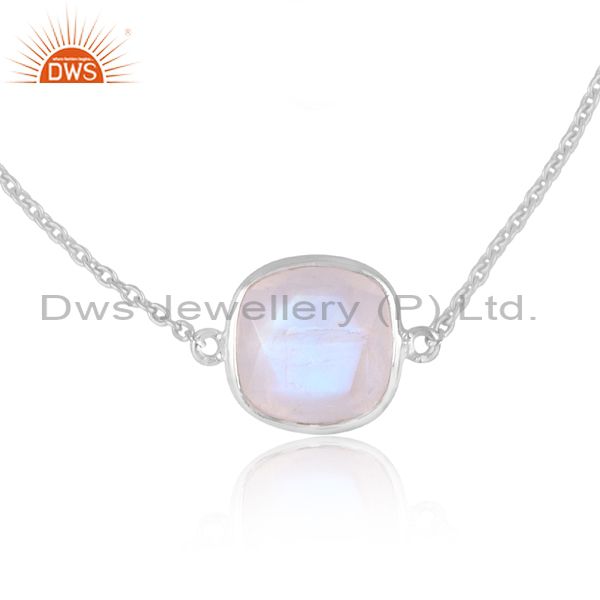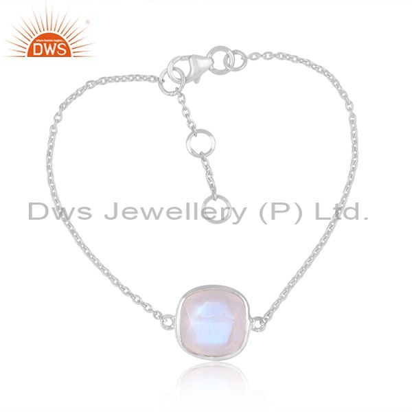 Rainbow Moonstone Gemstone Fine Sterling Silver Chain Bracelet