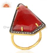Red Aventurine Gemstone Bracelet With CZ In 22K Gold Over Sterling Silver