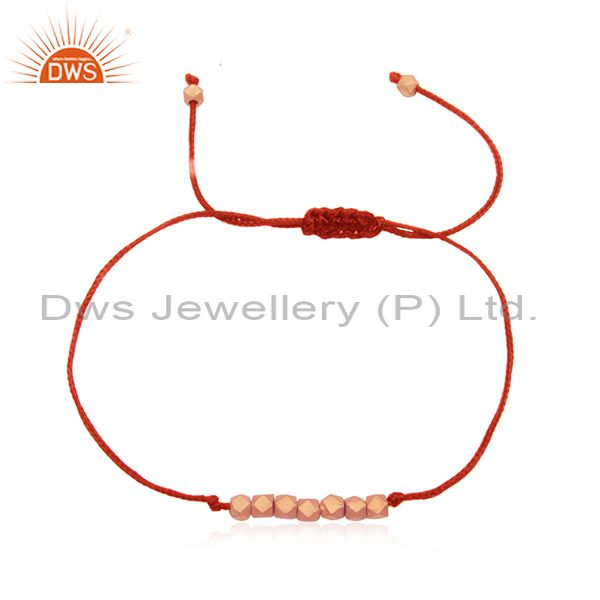 Red Cord 925 Silver Rose Gold Plated Beaded Adjustable Bracelet Wholesale