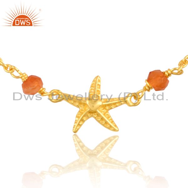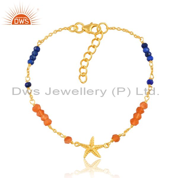 Red Onyx & Lapis With Gold Plated Sterling Silver Bracelet