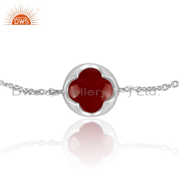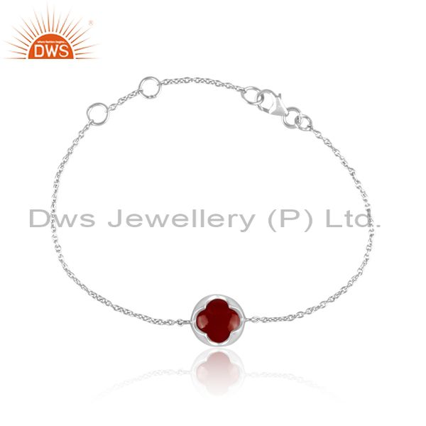 Red Onyx Set Fine 925 Sterling Silver Floral Charm Bracelet
