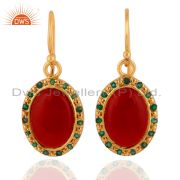 Red Onyx/Emerald Gemstone 925 Sterling Silver 18K Gold Plated Chain Bracelet