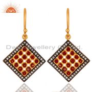 Rhodium Plated Sterling Silver Garnet Pave White Topaz Gemstone Fashion Bracelet