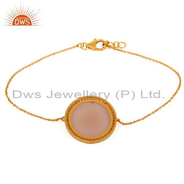 Rose Chalcedony & White Zircon Sterling Silver With Gold Plating