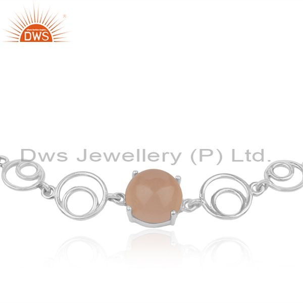 Rose Chalcedony Gemstone Fine 925 Sterling Silver Chain Bracelet