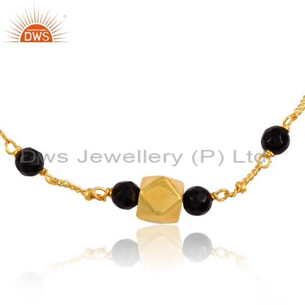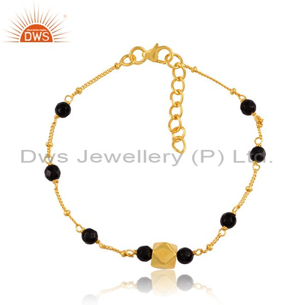 Round Black Onyx Set 18K Gold On Silver Handmade Bracelet