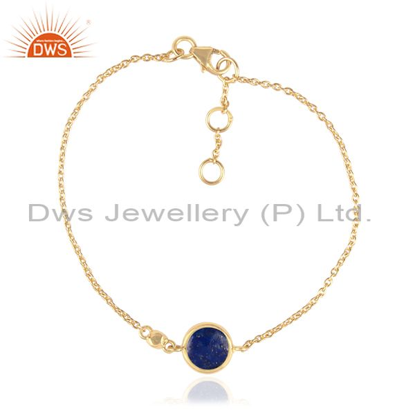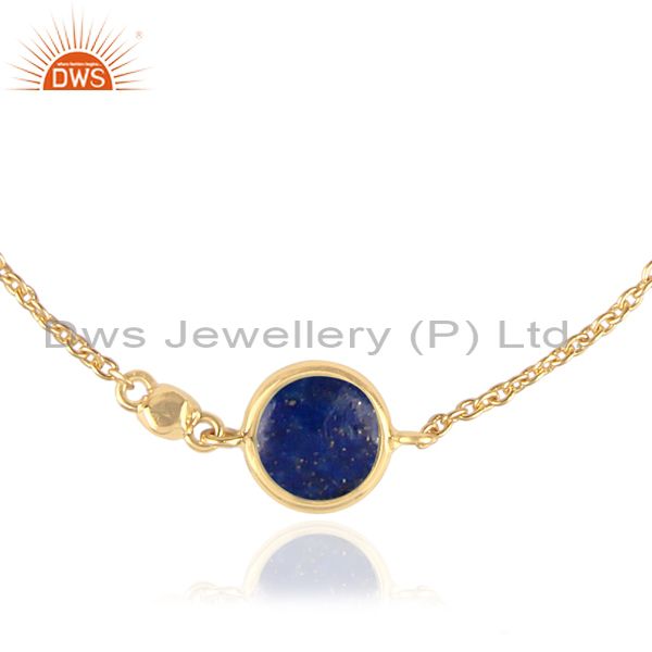 Round Lapis Charm Set Gold On Sterling Silver Chain Bracelet