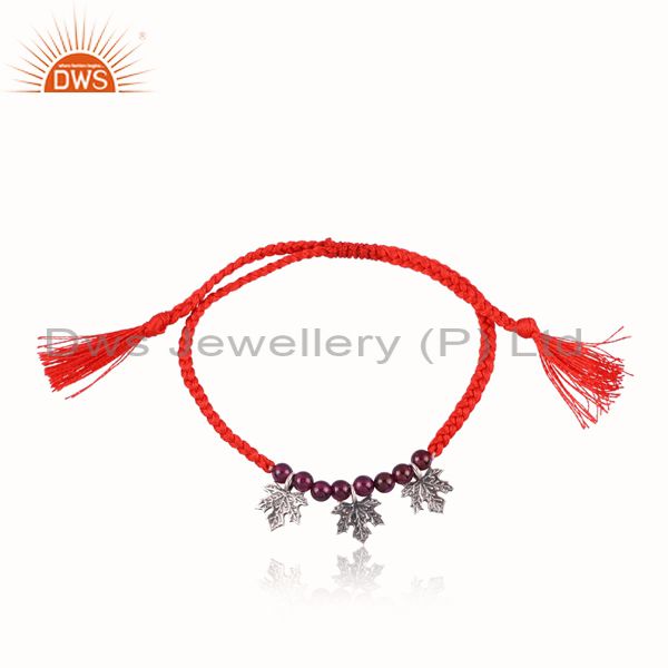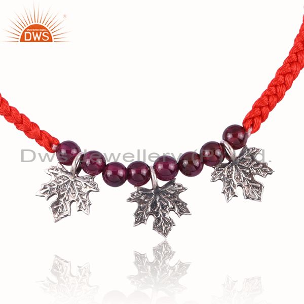 Round Plain Garnet Beads, Oxidized Silver Charm Set Bracelet