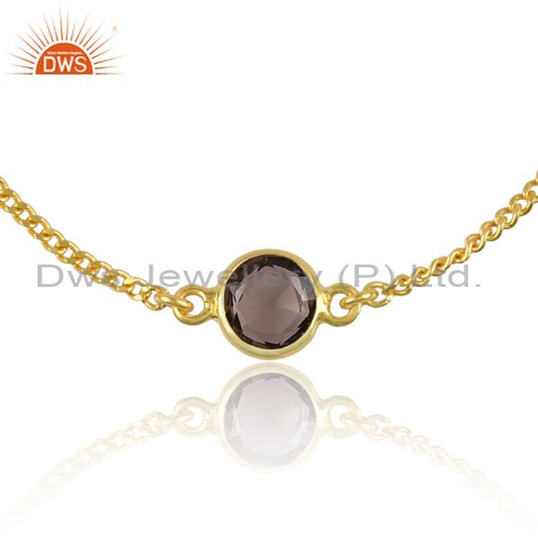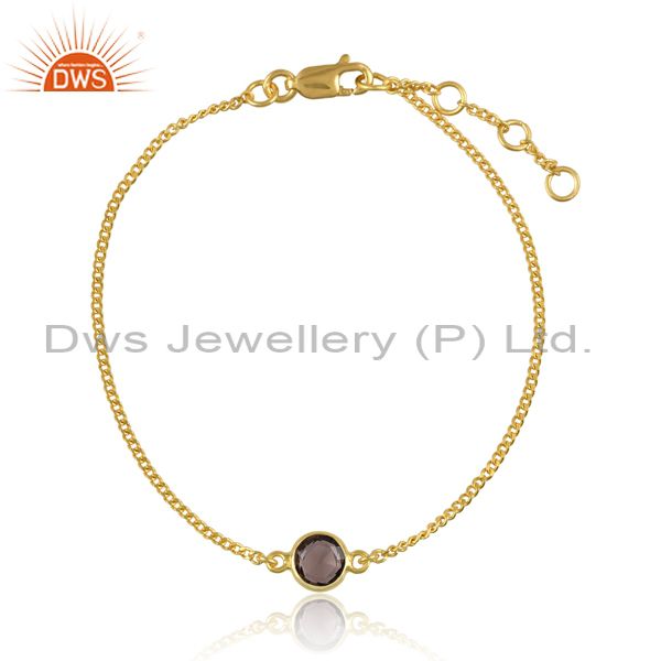 Round Smoky Set Charm Gold On Sterling Silver Chain Bracelet