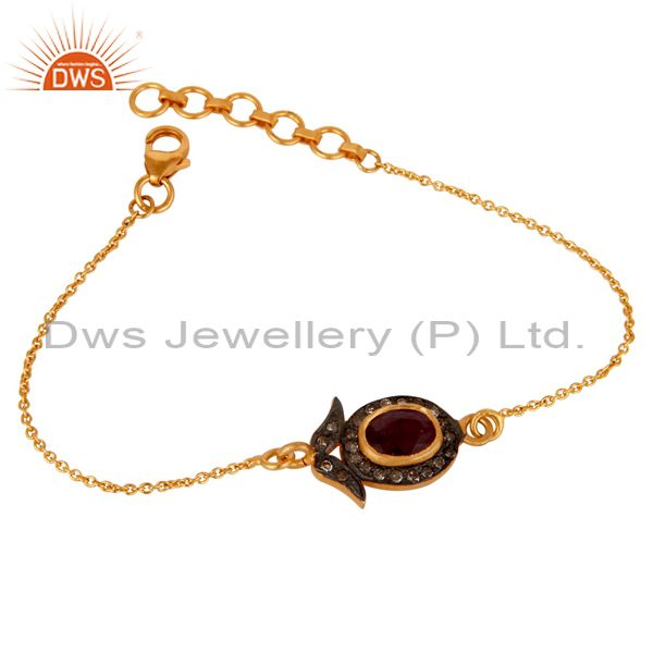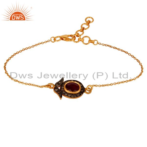 Ruby And Diamond 18K Gold Plated 925 Silver Bracelet With Adjustable Chain Link