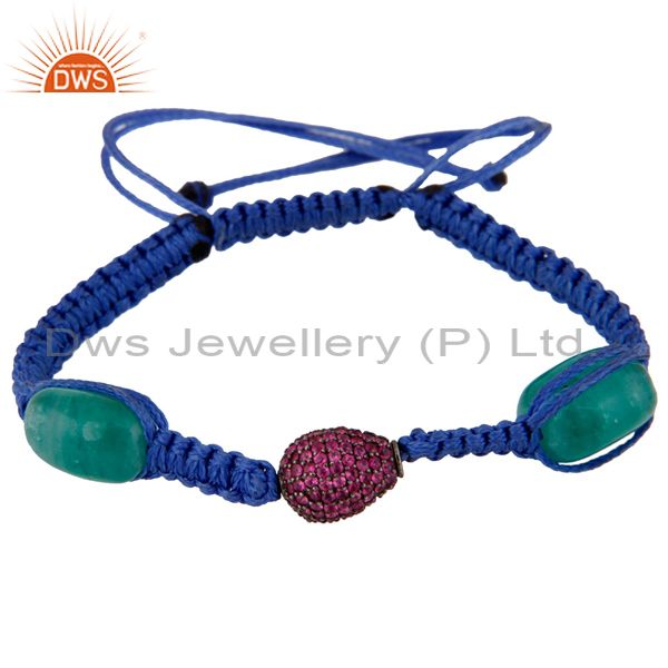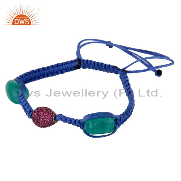 Ruby Pave Setting Beaded Macrame Bracelet In Sterling Silver Gift Jewelry