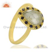 Rutilated Quartz Gemstone 925 Silver 18K Gold Gp Chain Blue Sapphire Bracelet