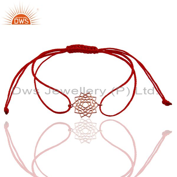 Sahasrara 925 Sterling Silver Rose Gold Plated On Dark Red Thread Bracelet