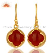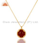 Shiny 14K Yellow Gold Plated Sterling Silver Red Onyx Gemstone Chain Bracelet
