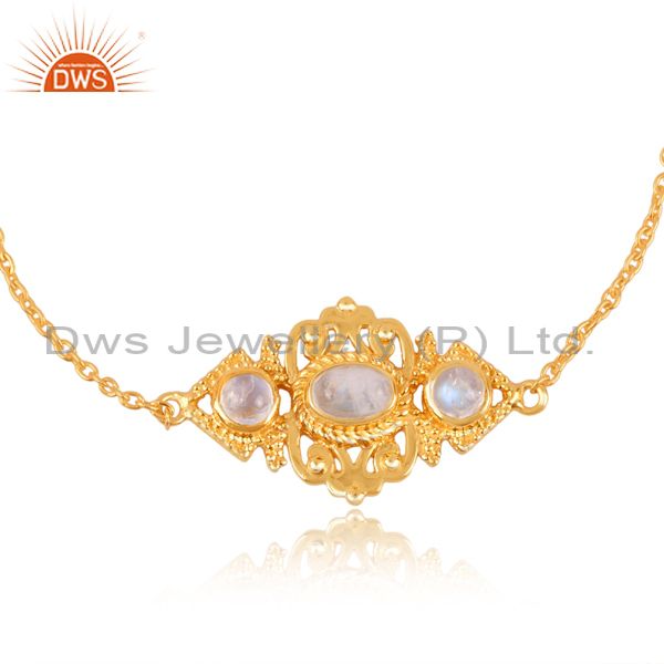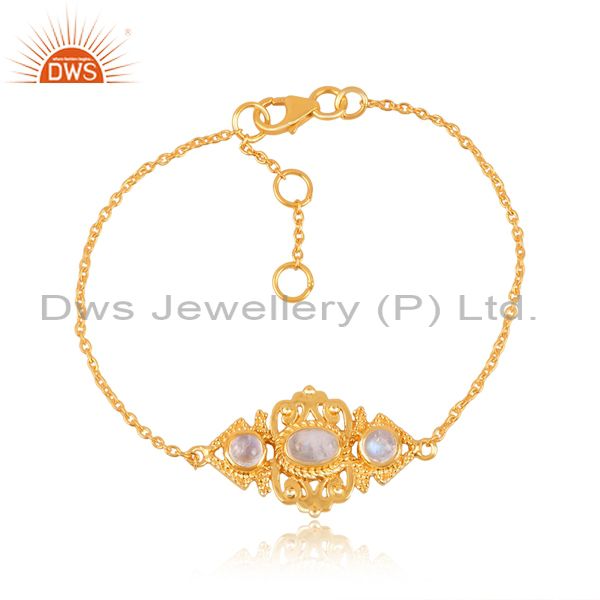 Silver Boho Bracelet With Yellow Gold On And Rainbow Moonstone