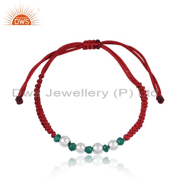 Silver Bracelet With Cotton Dori And Green Onyx Stone
