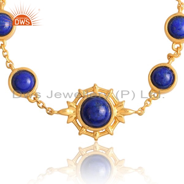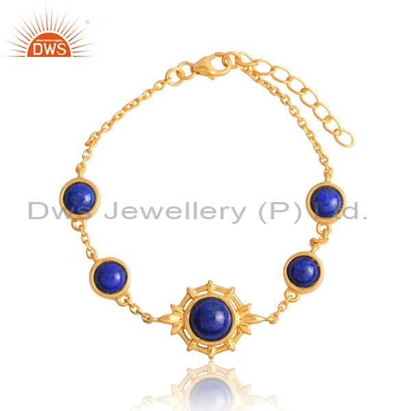 Silver Gold 18K Bracelet With Lapis Round Cut