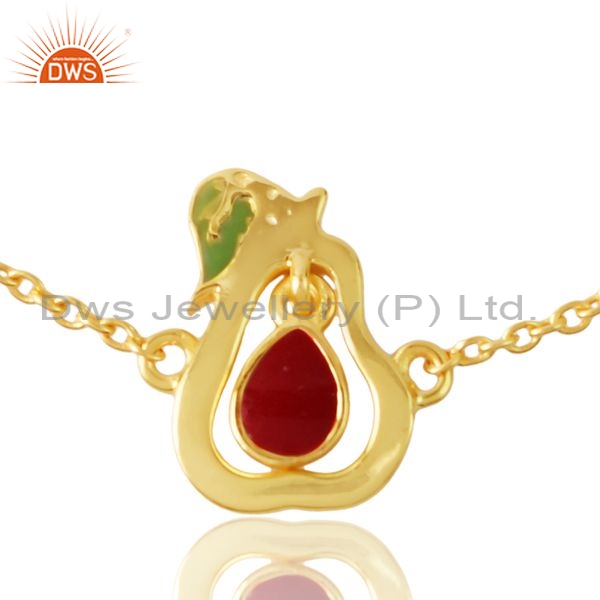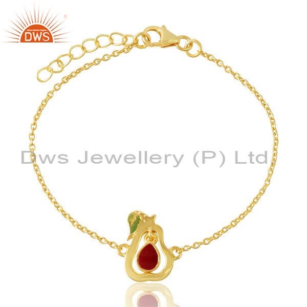 Silver Gold 18K Bracelet With Pear Red And Green Enamel