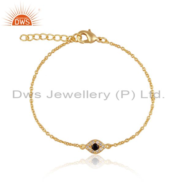 Silver Gold Bracelet With Black Onyx And Cubic Zirconia