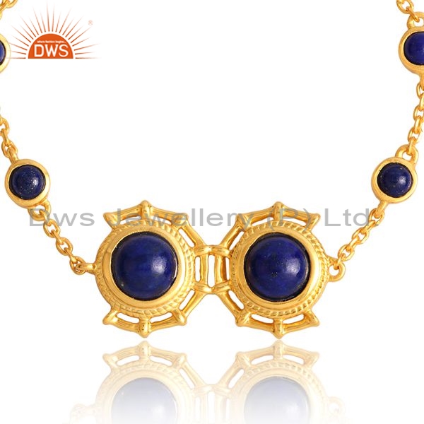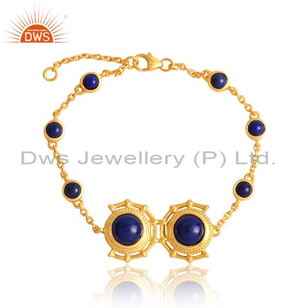 Silver Gold Bracelet With Lapis Round Cabushion Stone