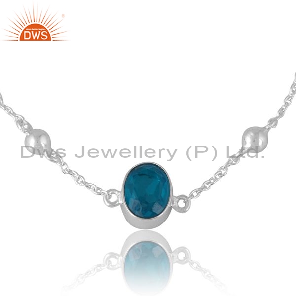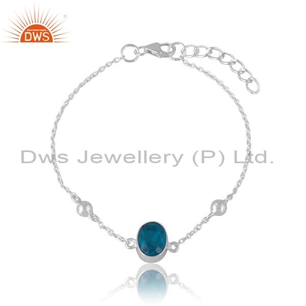 Silver White Bracelet With Doublet Aquamarine Oval Cut
