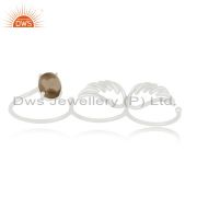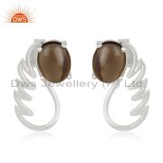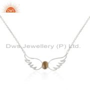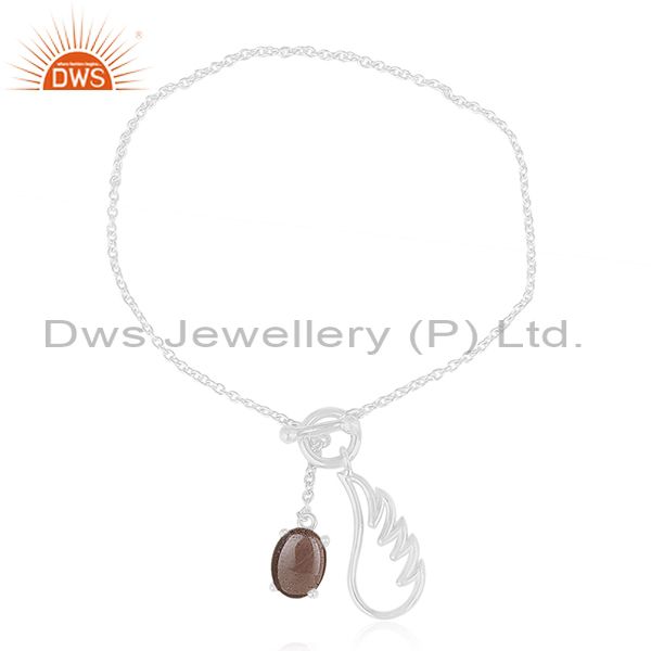 Smoky Quartz Gemstone 925 Fine Silver Angel Wing Lucky Charm Bracelet Wholesale