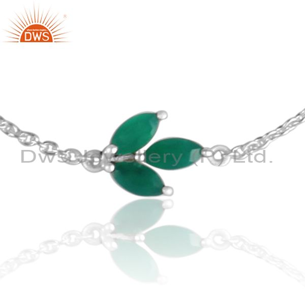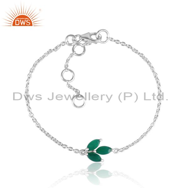 Solid 925 Sterling Silver Green Onyx Gemstone Chain Bracelet With Lobster Lock