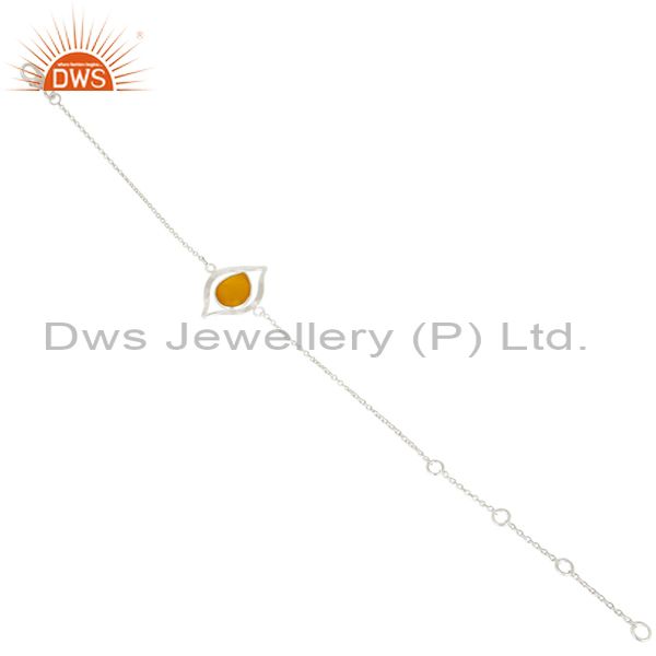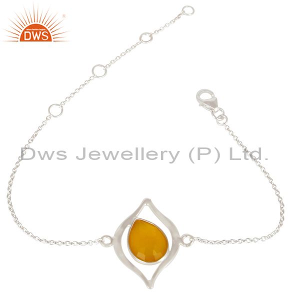 Solid 925 Sterling Silver Handmade Yellow Chalcedony Gemstone Chain Bracelet