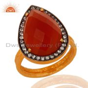 Solid Sterling Silver With Gold Plated Red Onyx Gemstone Chain Bracelet With Cz