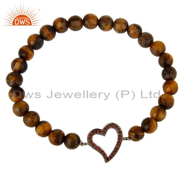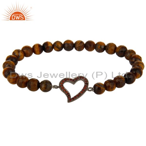 Spessartite Garnet 925 Silver Heart Charm Tiger Eye Tiger Eye Stretch Bracelet