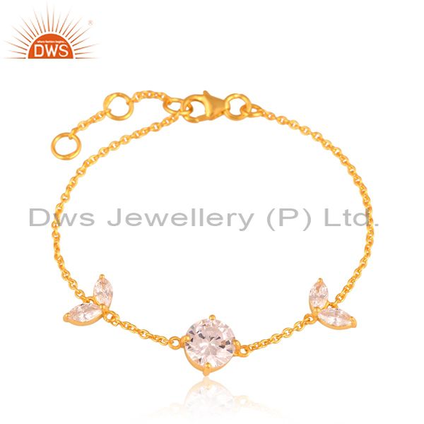 Sterling Silver Bracelet Gold With Cubic Zirconia Stones