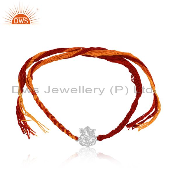 Sterling Silver Bracelet With Black Cotton Dori Dori