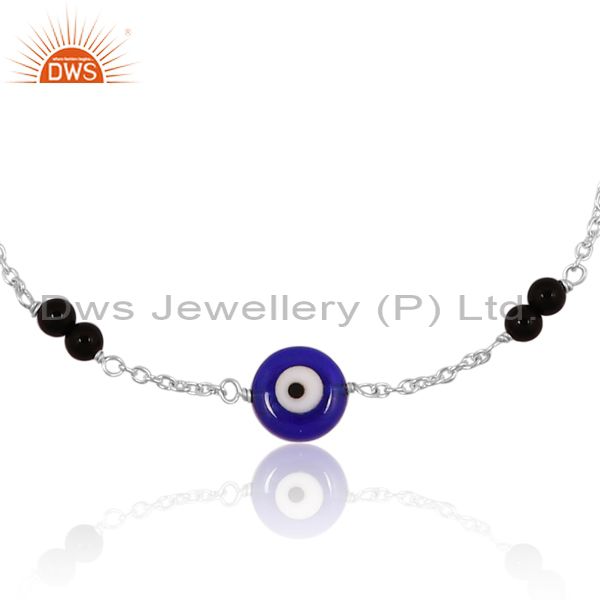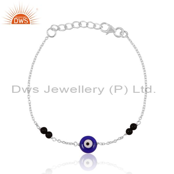 Sterling Silver Bracelet With Black Onyx And Evil Eye Stone