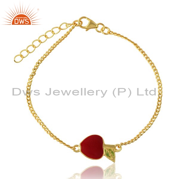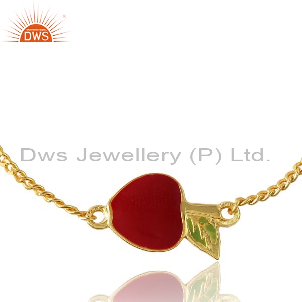 Sterling Silver Gold Bracelet With Apple Red Green Enamel