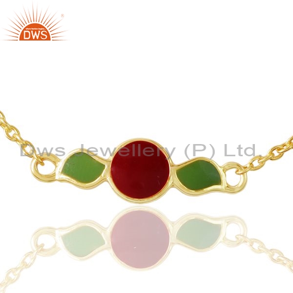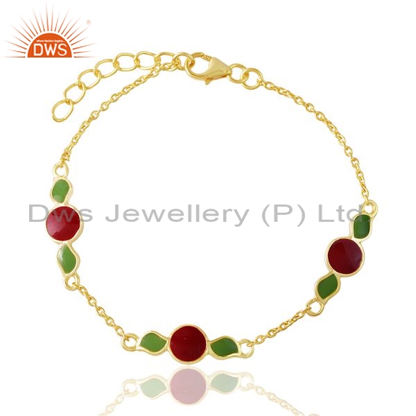 Sterling Silver Gold Bracelet With Green And Red Enamel