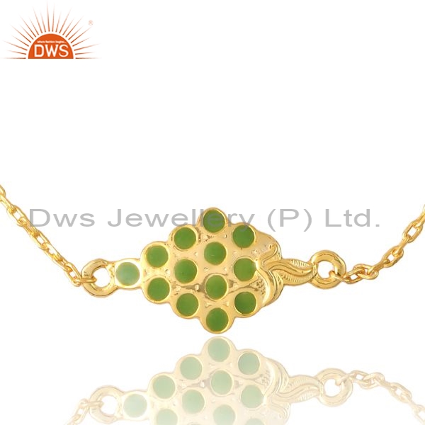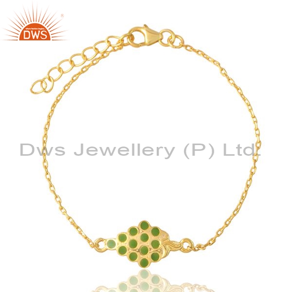 Sterling Silver Gold Bracelet With Green Grape Enamel